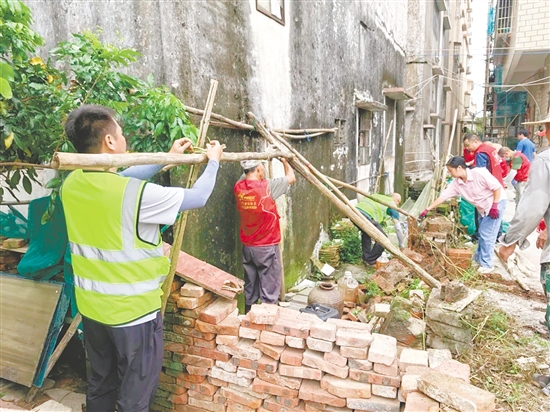 铁锹敲碎冷巷里堆积的砖石,铁铲清理闲置屋里的垃圾,铲车将岸边的杂物装车清运……连日来,为筑牢蚊媒传染病防控防线,清除冷巷、闲置屋等蚊虫孳生的“温床”,会城东甲村全面铺开灭蚊攻坚行动。区直机关单位党员干部、外市支援队,以及东甲村本地干部、村民代表等各方力量组成攻坚大军,日夜奔忙在该村16个村民小组,以“啃硬骨头”的劲头发起总攻,日均清理垃圾超20吨。