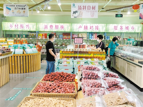 市供销社还大力做强农产品产销对接流通网络,搭建农产品销售平台,打通优质农产品原产地直供通道,建成5个农产品区域直供配送平台、9个农产品加工配送中心、10家农产品旗舰店和90家社区连锁店,完成江门消费帮扶馆建设任务。特别是在今年3月恩平市马铃薯滞销期间,市供销社发挥农产品销售网络作用,帮助农户销售马铃薯6500多吨,有效解决了农民销售难问题。