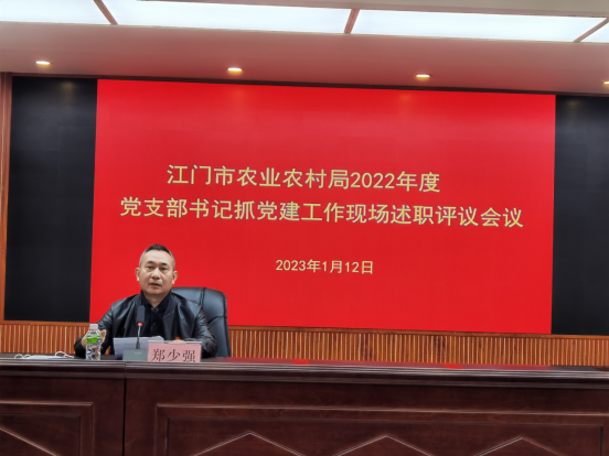 1月12日,市农业农村局开展2022年度党支部书记现场述职评议工作,听取支部书记述职汇报,全面“体检”直属党支部履行抓党建责任成效,交流探讨党建工作经验,查找梳理党建问题短板,并现场进行评议打分,推动机关党建工作高质量发展。局领导班子成员,各党支部书记、副书记,局机关各科室负责人、局属各事业单位负责人近50人参加了评议会,局党组书记、局长、机关党委书记郑少强作了讲话。会议由局党组成员、副局长、机关党委副书记潘志坚主持。