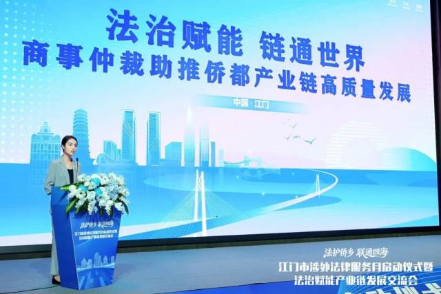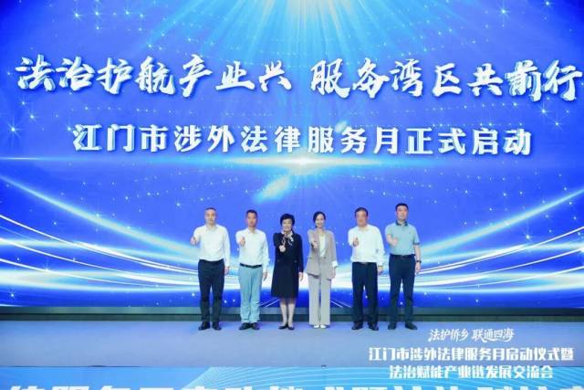 3月31日下午,由中共江门市委全面依法治市委员会办公室指导、江门市司法局、江门市工业和信息化局、江门市商务局、江门市工商业联合会、江门市法学会主办,江门市律师协会承办的“法护侨乡 联通四海—江门市涉外法律服务月启动仪式暨法治赋能产业链发展交流会”成功举办,本次交流会聚焦“数智创新”和“法治协同”两大主题,重点破解产业链高质量发展中的法律痛点、安全堵点,搭建我市优质法律服务资源与企业沟通交流平台,以高水平法治赋能产业链高质量发展。