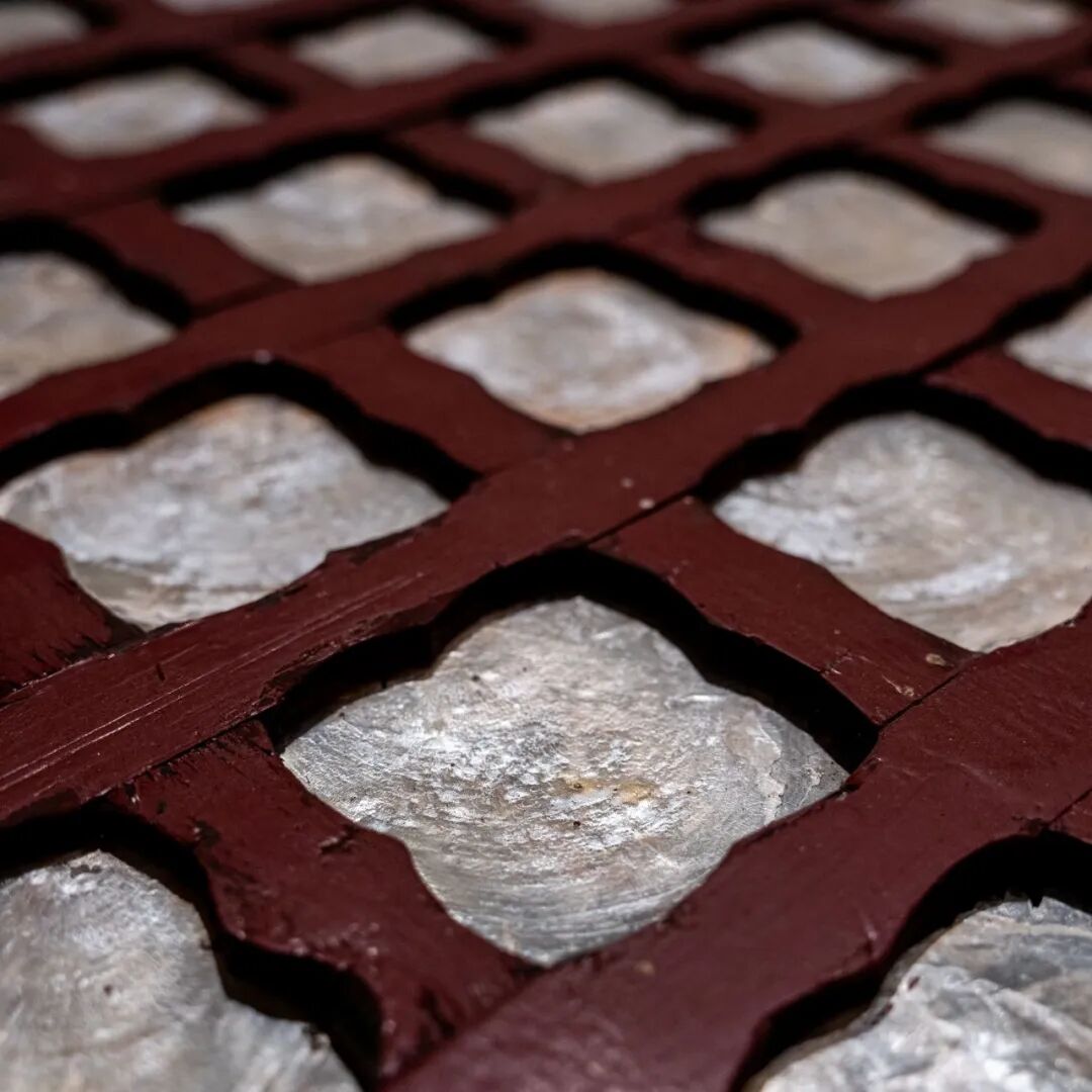 《肇庆府志》关于“明瓦”有明确记载:“蚝光出阳江海中,蚝别种,无肉,治其壳,施以窗隔,薄而明,谓之明瓦。” 明瓦是以牡蛎壳或海月贝等贝类加工而成,每一片明瓦都要经过刷洗、晾晒、切边、打磨等七八个程序,原料稀缺,工艺复杂,尤为珍贵。