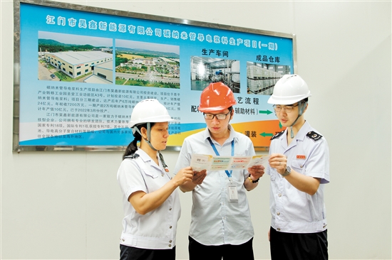 江门日报讯 (文/图 记者/周晓营) 位于恩平的昊鑫新能源有限公司(以下简称“昊鑫新能源”)在碳纳米管及其复合浆料的研发上潜心耕耘,落户恩平工业园的短短几年时间里,该公司已获授国家专利7项,其中发明专利6项。日前,该公司成功攻克了单壁碳管粉体量产难题,打破了国外垄断,其最新技术突破了电池溶液性能限制,能有效促进电池的体积能量密度和功率密度提高约10%,相关应用已覆盖下游动力电池、储能电池、电动汽车等产品,并直供国内一家头部新能源车企。技术的研发攻坚,离不开生产线的不断革新升级,在昊鑫新能源调整扩建生产线的关键节点,是恩平市税务部门带来了资金重要助力。