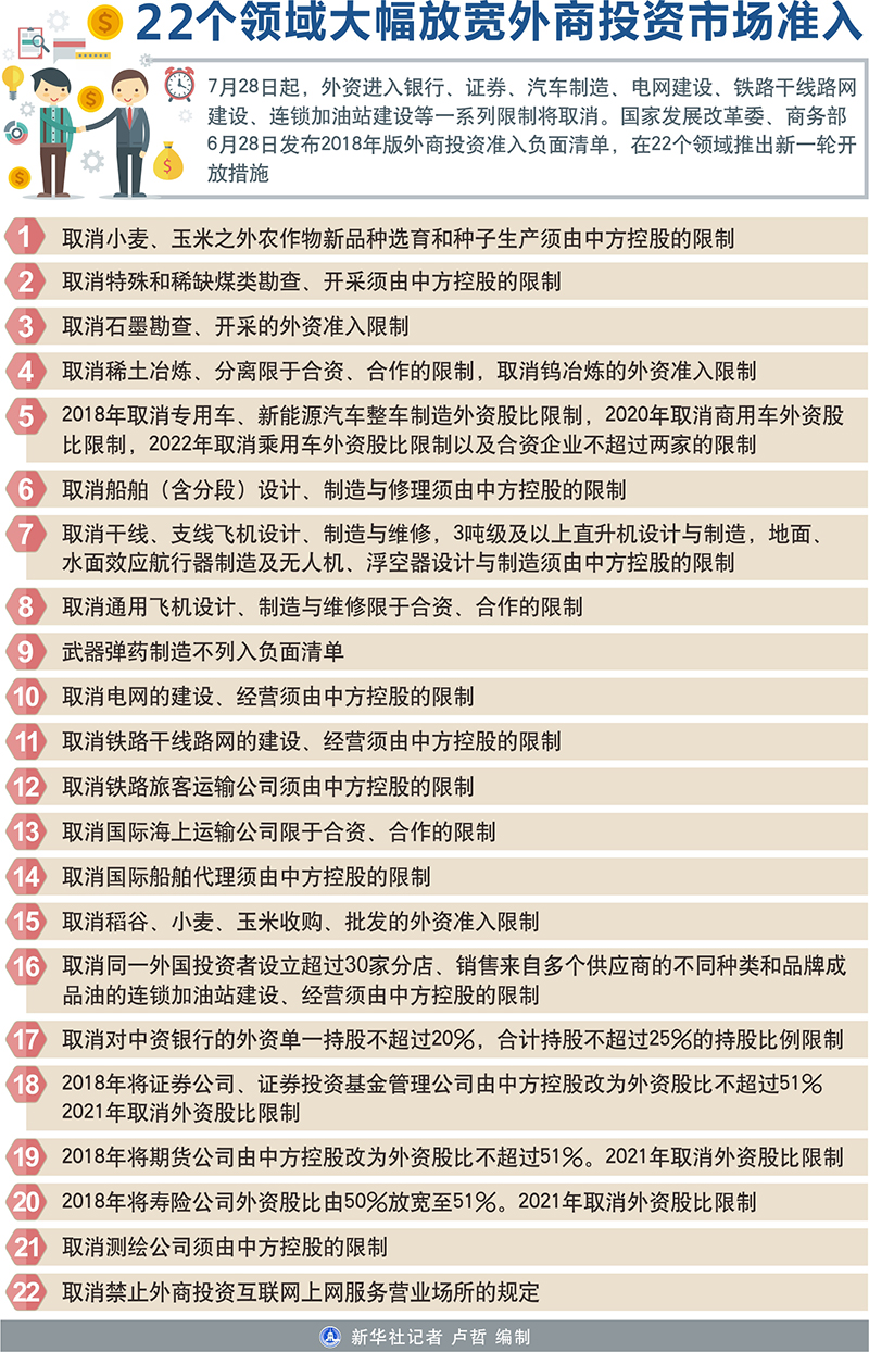 图表:22个领域大幅放宽外商投资市场准入
